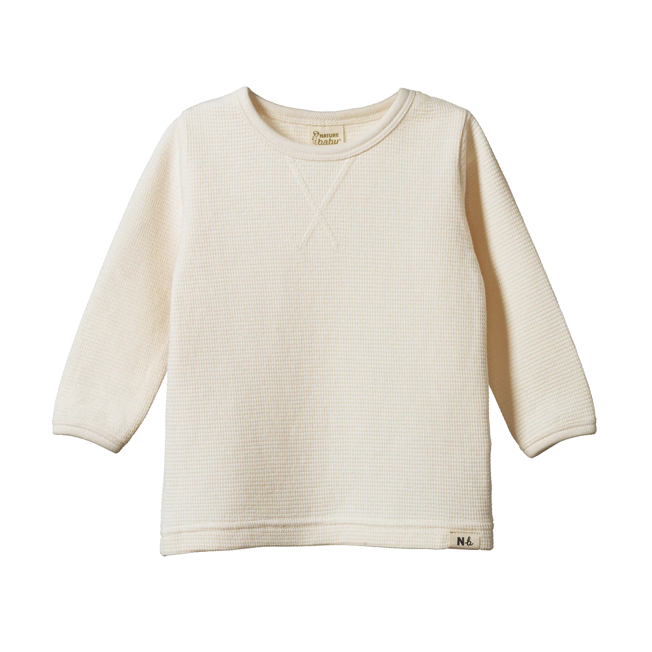 An essential in any wardrobe, our waffle tee, crafted from organic cotton waffle, strikes the perfect balance between light breathability and added warmth for cooler months. With decorative V stitching at the front, along with binding at the neckline and sleeves, this comfy piece effortlessly simplifies dressing your little one.