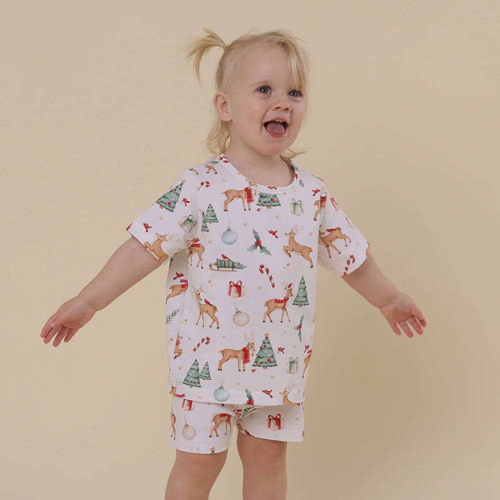 Sleep in comfort and style with our kids Prancer & Friends PJ Set. Our lightweight and breathable PJs include a t-shirt and matching shorts and have a comfy, relaxed fit. All Snuggle Hunny clothing is made with GOTS Certified Organic Cotton CU 1182228.