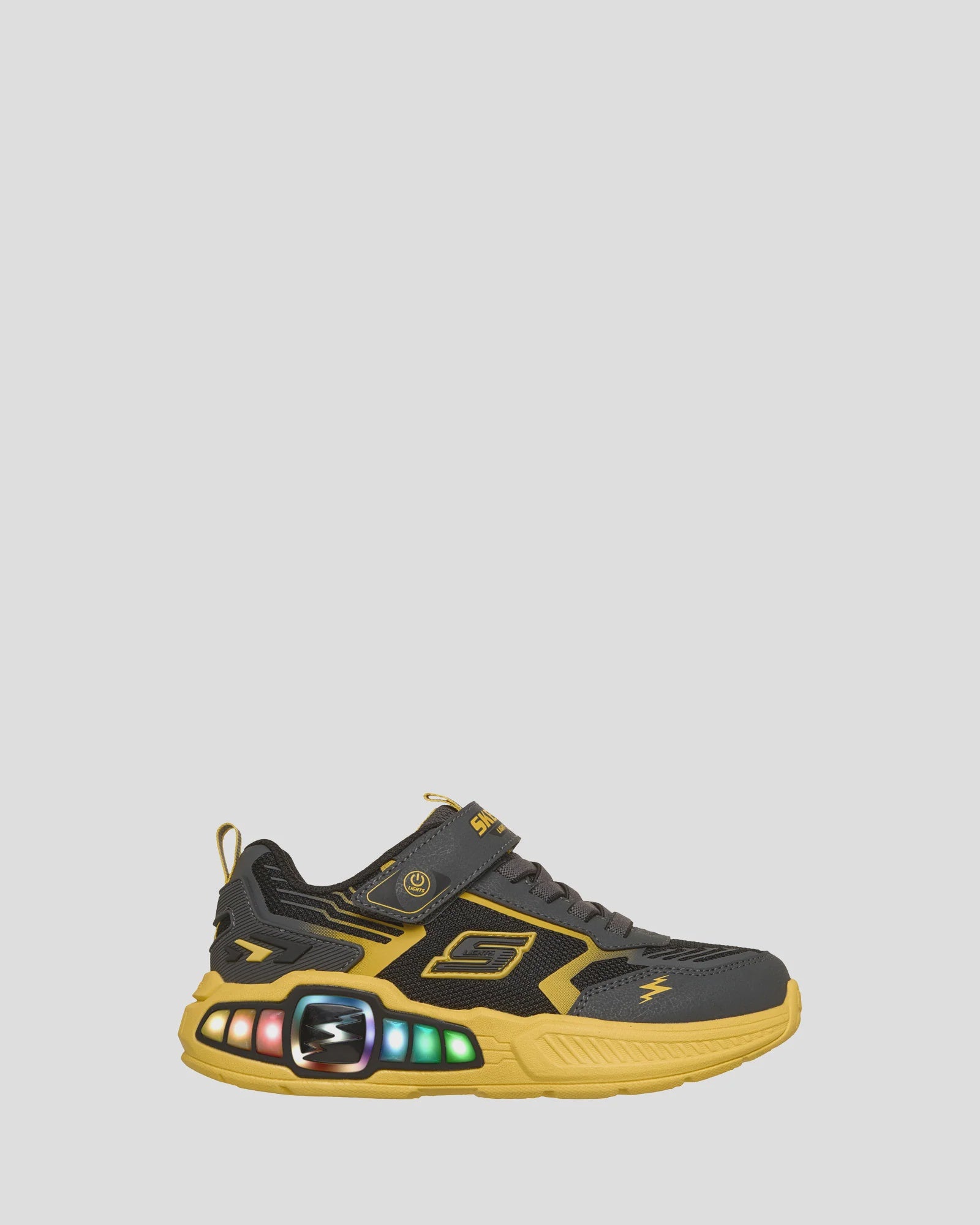 Step with a bolt of comfort and sporty style in Skechers S-Lights®: Light Storm 3.0. This thematic sneaker features a mesh and synthetic upper with a multicolored light-up tech piece midsole, stretch laces, and adjustable instep strap.