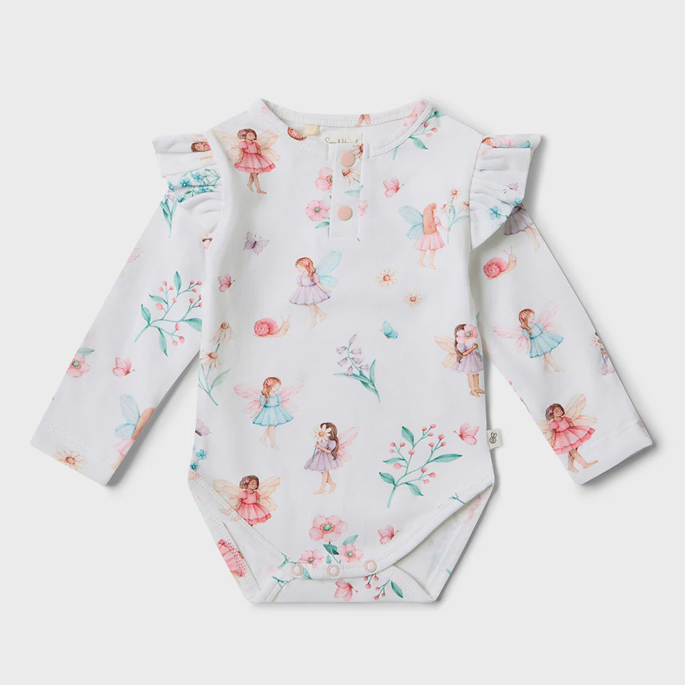 Fairy Garden Long Sleeve Organic Bodysuit with Frill